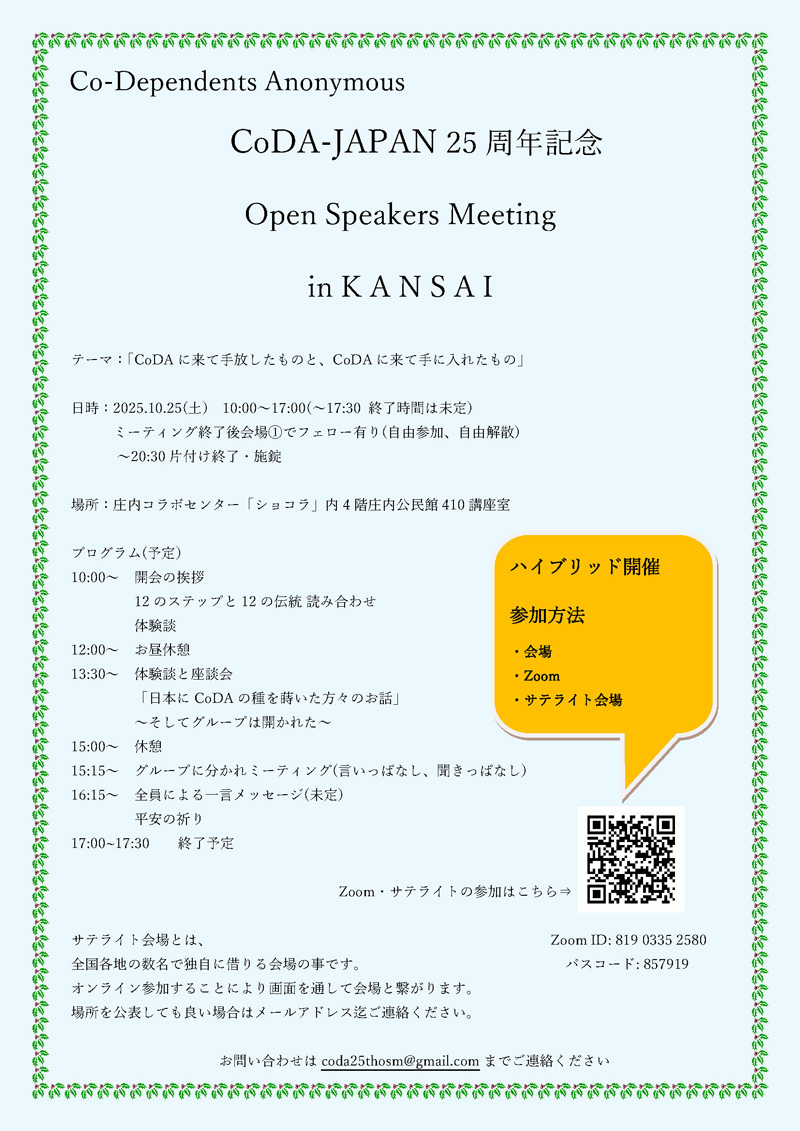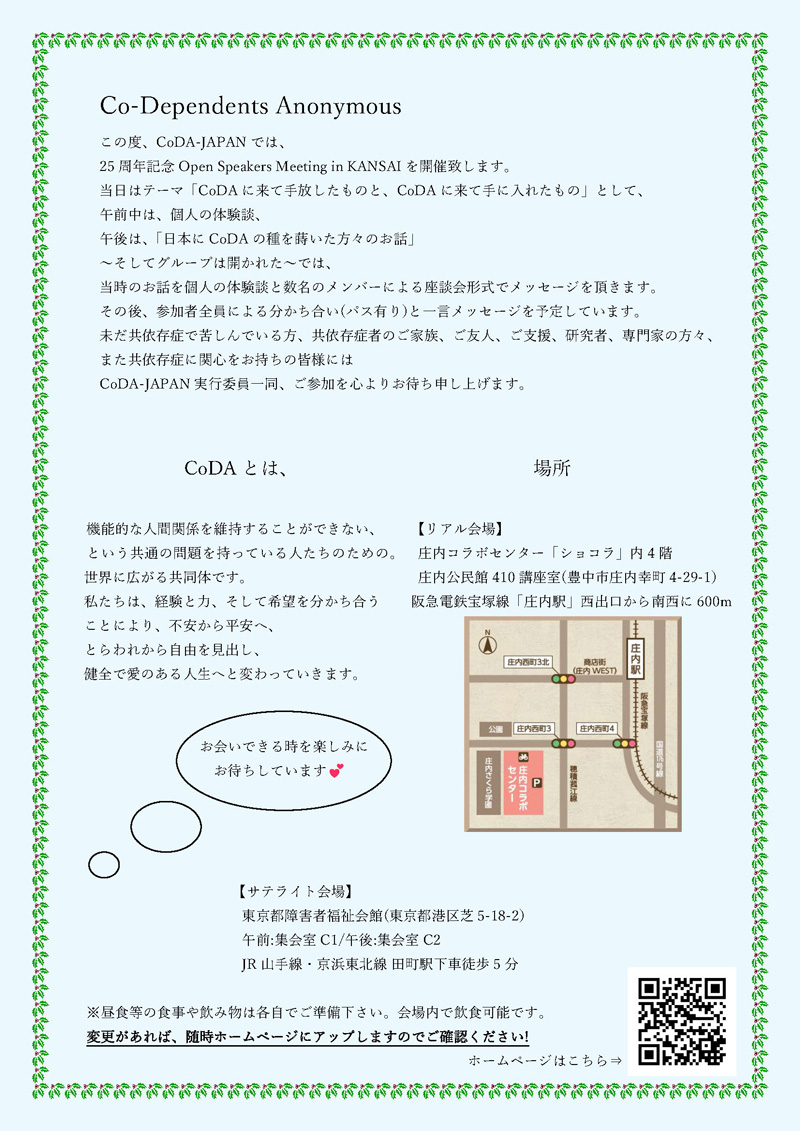 『CoDA-JAPAN25周年記念Open Speakers Meeting in KANSAI』特設ページ
